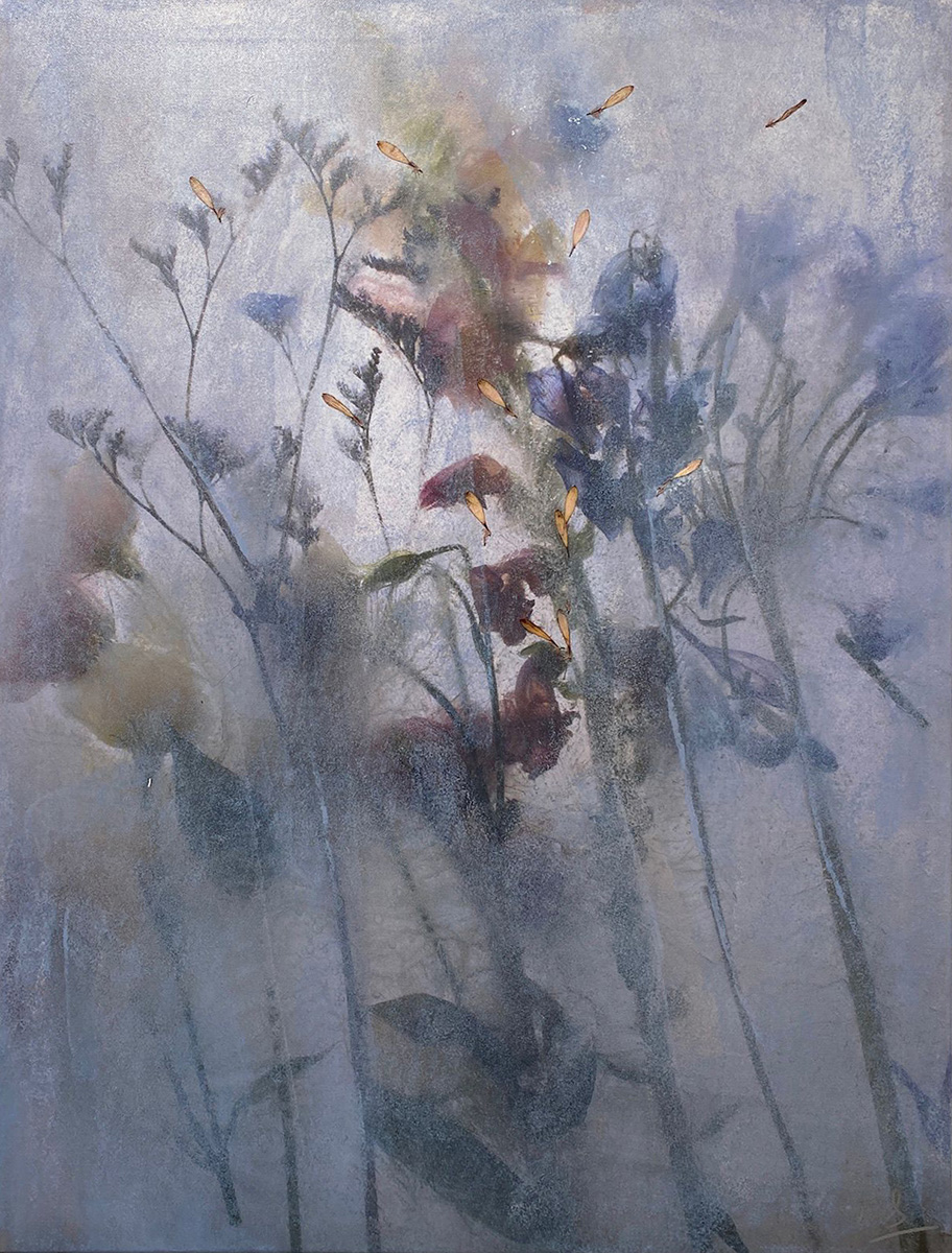Het toevoegen van diverse materialen aan de print van een Frozen Flower geeft het werk extra gelaagdheid en een nieuwe dimensie met diepere emoties. Het werk krijgt een persoonlijkere invulling.