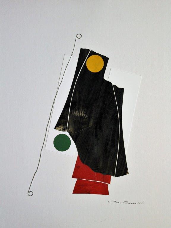 In mijn werk streef ik niet uitsluitend naar uitbundige expressie; soms is ingetogenheid vereist. Mijn werk gaat over de essentie van het beelden en de voorwaarden van de kunst zelf. Alleen het noodzakelijke mag worden weergegeven. Ik bouw composities op met scherp uitgesneden vormen uit papier en met gebruik van een beperkt kleurpallet. De leegte in het beeldvlak is evenzeer van belang. Om mijn persoonlijk handschrift buiten het kunstwerk te houden, zet ik de lijnen op met ijzerdraad. Ik wil zelf niet in het kunstwerk aanwezig zijn.