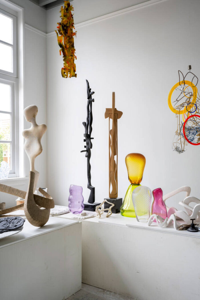 brons hebben ook hout en glas hun plaats in het creatieve proces.