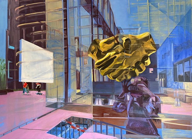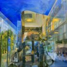 Ik ben gefascineerd geraakt door de surrealistische weerspiegelingen in glas die ik zie in stedelijke gebieden, o.a. op de Zuidas van Amsterdam. Vooral de misleidende perspectieven spreken mij aan. Ik schilder die architectonische verwarring om zo de vervreemdende atmosfeer van de moderne stadsbiotoop te laten zien.