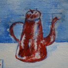 Dertig jaar later, mijn eigen werkplaats. Schilderijen om me heen, porselein, ik heb er mijn vorm in gevonden.