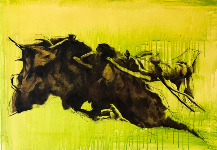 Daarnaast maak ik vrij werk, waarbij ik vaak in series werk, met verschillende technieken. Ik onderzoek dan persoonlijke emoties, en ervaringen en verbind deze met universele thema’s”.