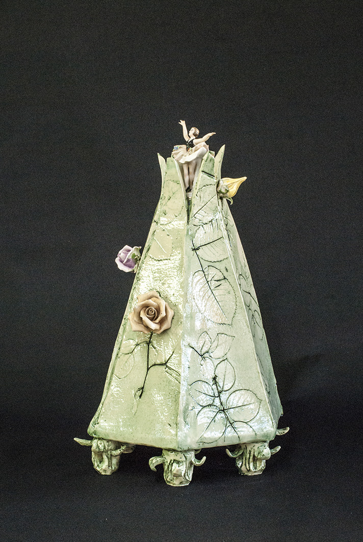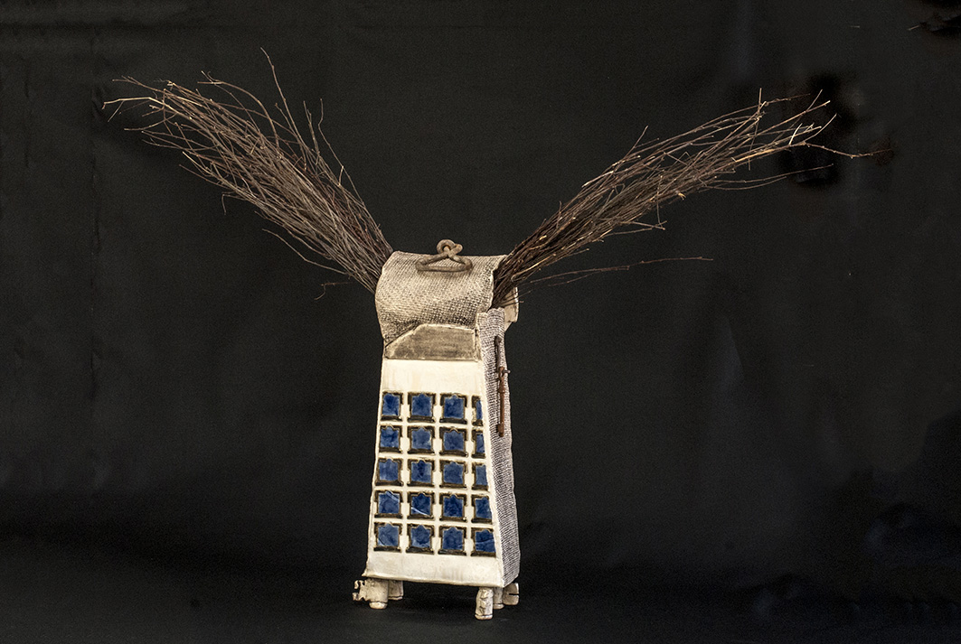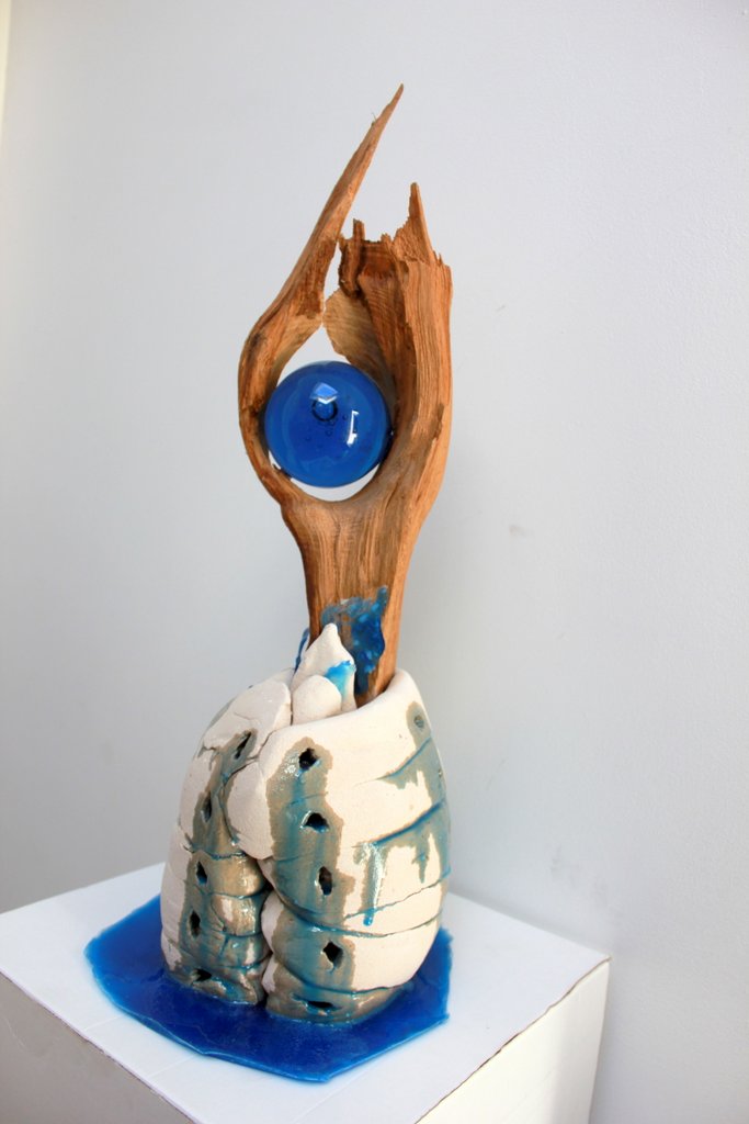 Serendipiteit is de rode draad in mijn werken met verschillende materialen. Het leven, groots en klein, mijn speelveld, waar ik mij onder mijn handen verwonder en mijn gedachten orden. Het werk hiernaast is ontstaan na een lange pijnlijke periode van ziekte en verwarring in mijn leven. Bij het weer opstarten in mijn atelier, koos ik om met mijn handen de klei in te gaan en letterlijk weer te aarden. Het werd een serie keramische assemblages.