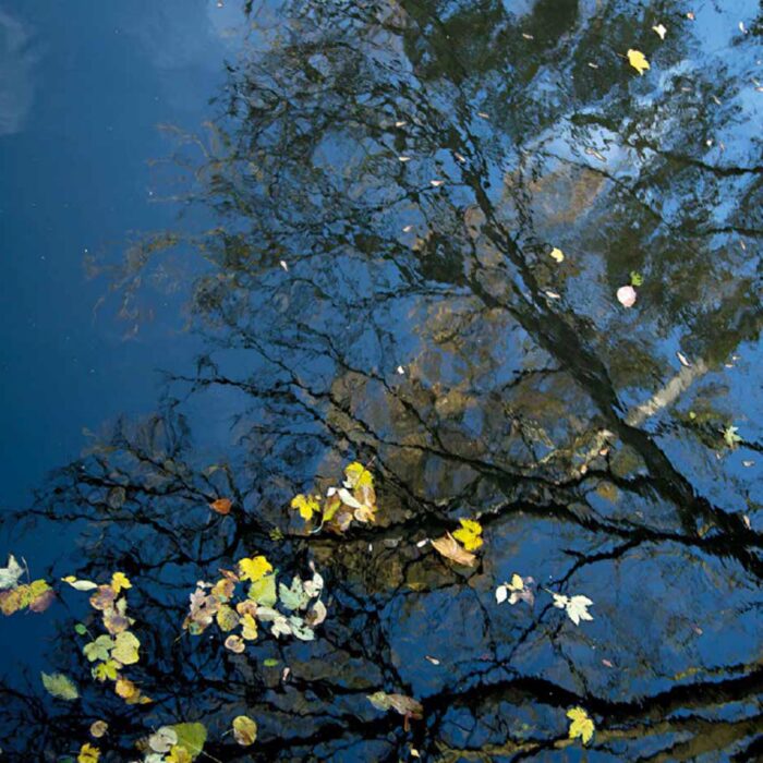 er even de tijd voor nemen. Water met daarop drijvende bladeren en bomen erin weerspiegeld, een beeld waarin je jezelf kan onderdompelen, een beeld dat rust geeft en ruimte voor contemplatie.