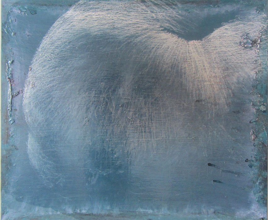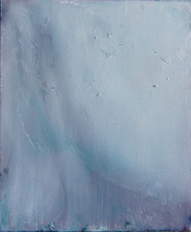 Mijn schilderdoek ligt plat, of staat rechtop. Langzaam strijk ik dunne verf over de onregelmatige grond.