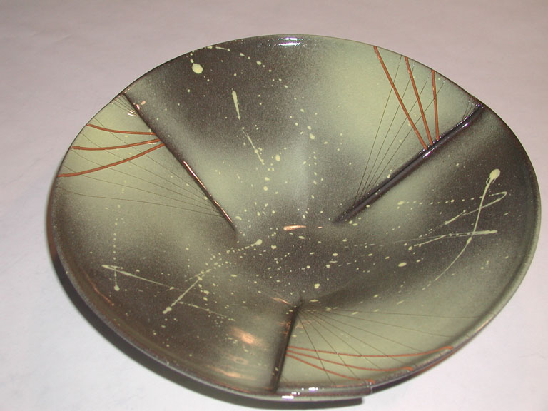 Haar warm-kleurige werken drukken elegantie en harmonie uit door een spel van vorm, abstrakte ontwerpen, wisselwerking van lijn en vorm, en oppervlakte behandeling.