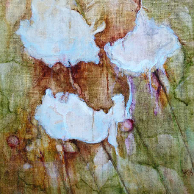 matige en de transparantie in het schilderen zelf. Met een gekozen element ga ik vanuit ‘herinnering’ vrij en onderzoekend te werk. Ik laat me leiden door vormen en kleur, totdat uit het woekeren het uiteindelijke beeld voor mij helder wordt.